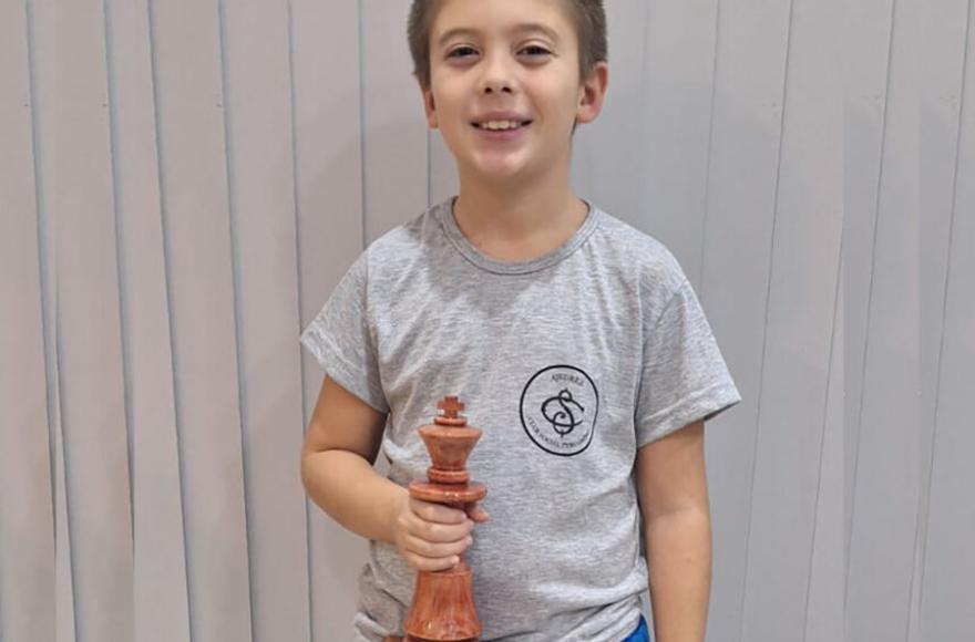 El joven, de tan solo 9 años y alumno de la Escuela Deportiva de Pergamino, ganó seis partidas y empató una, ratificando su gran arranque de año. De esta manera, volvió a imponerse en la categoría Sub 15, tal como lo había hecho previamente en la ciudad de Junín.
