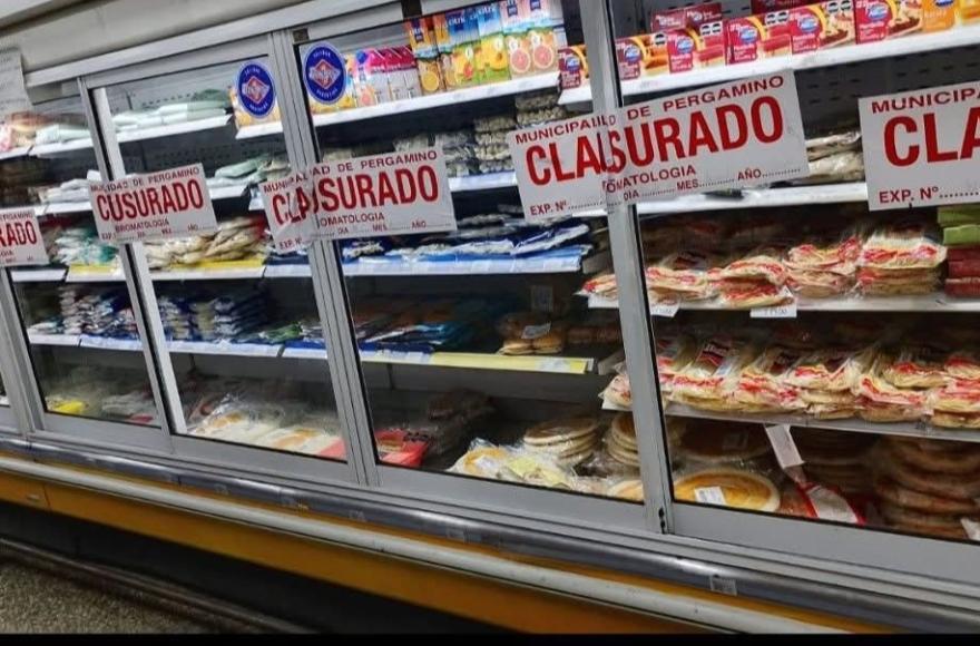 Este domingo, vecinos del supermercado ubicado sobre calle Tucumán alertaron el estado de las heladeras, las mismas estaban fajadas con la cinta de “clausurado”.