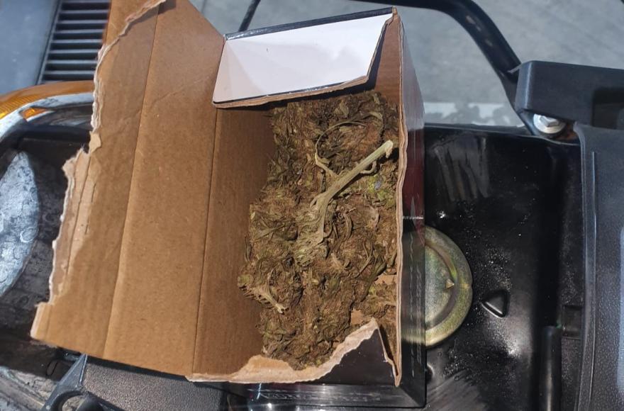 Cuando se les pidió la documentación de la moto, respondieron que no la poseían, ni tampoco carnet de conducir. Sin embargo, al buscar en la baulera, los inspectores de Patrulla Urbana observaron una caja de cartón que contenía partes de una planta de similares características a cannabis sativa.