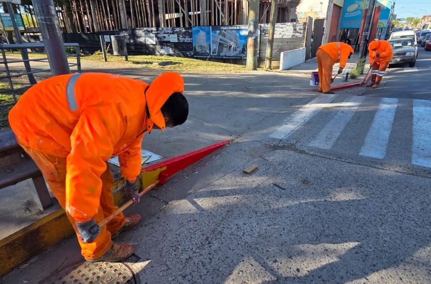 Además, se ejecutaron trabajos de demarcación horizontal en sectores destinados a colectivos urbanos e interurbanos, zonas de ascenso y descenso de pasajeros, reductores de velocidad, estacionamientos de motos, canteros y rotondas.