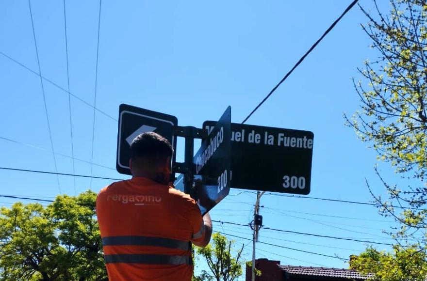 En paralelo, el municipio avanza con la colocación de 190 nuevos carteles nomencladores con nombres de calles, alturas y flechas que indican el sentido de circulación.