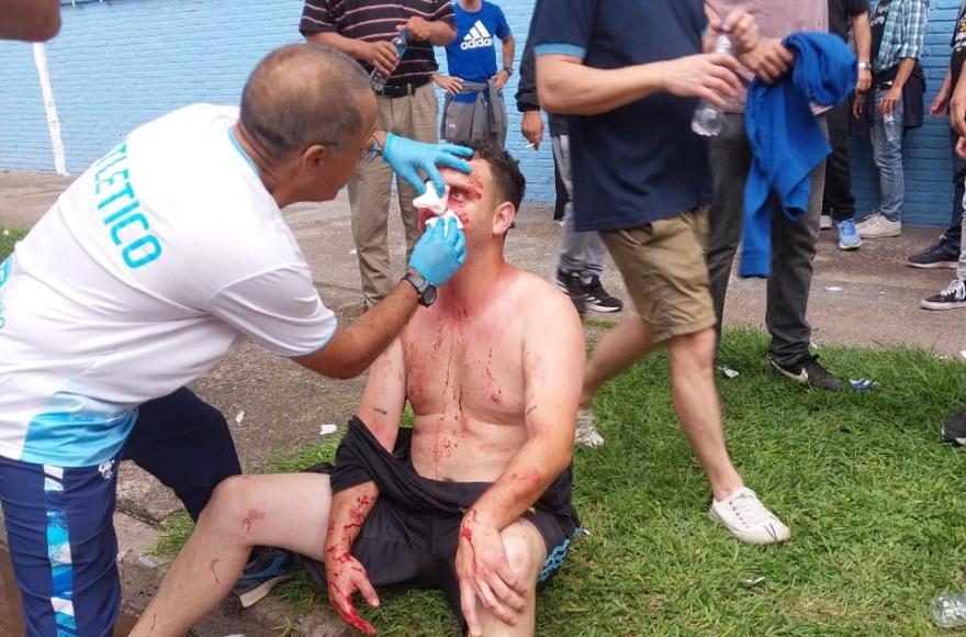 Aproximadamente 100 personas se acercaron a la zona donde estaba la hinchada rojinegra y los agredieron con palos y botellas, muchos debieron ser atendidos en el lugar y en uno de los registros fotográficos se ve el presidente de la institución y secretario de gobierno Karim Dib.
