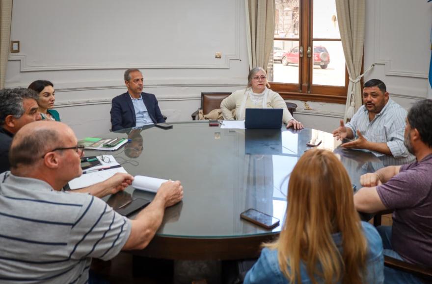 El encuentro tuvo lugar en la sede de la Municipalidad y contó con la presencia del secretario de Gobierno Karim Dib y la secretaria de Hacienda y Finanzas Andrea Lamelas, junto a los delegados de los sindicatos SOEM, ATE, UPCN y SOSBA.